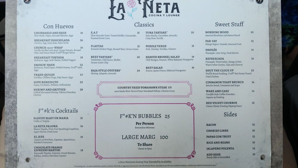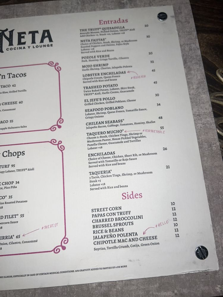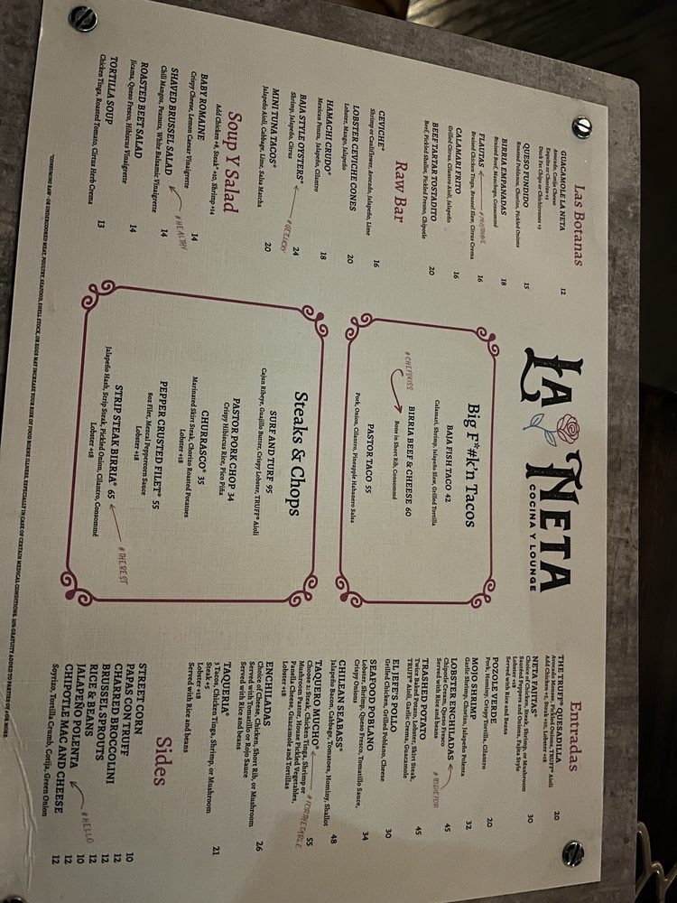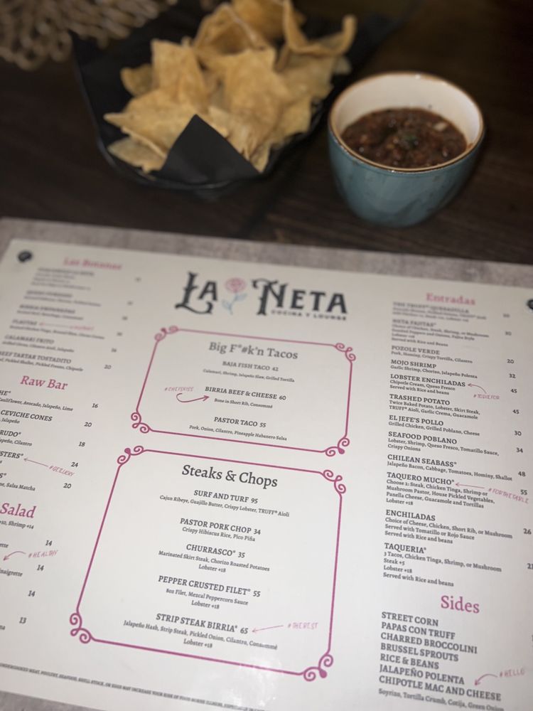La Neta Cocina y Lounge offers a trendy, upscale atmosphere perfect for a romantic date night or casual gathering. Enjoy a variety of specialty cocktails like the Dragon Culada or Oaxaca's Last Word, along with unique margaritas like the Spicy Pia or Picante Mango. The menu features delectable desserts like Mexican Hot Chocolate Cake and Red Velvet Churros. Customers rave about the friendly service and delicious offerings, making it an ideal spot for happy hour. With a diverse selection of vegan and limited vegetarian options, La Neta promises a memorable dining experience in downtown Summerlin.